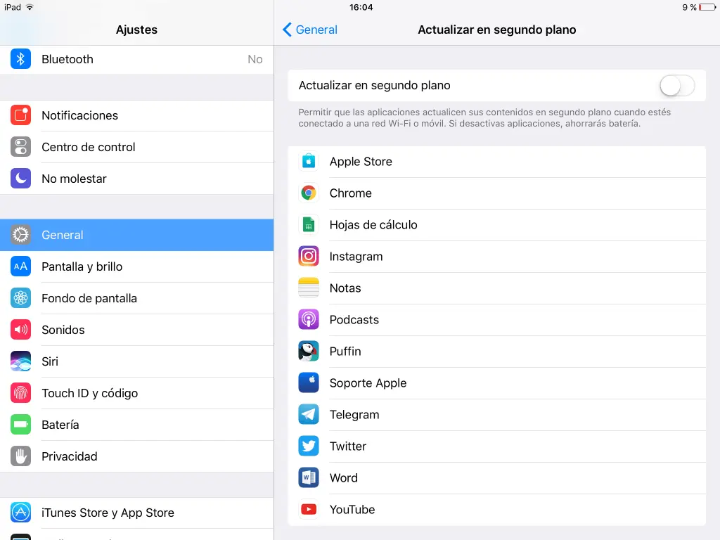 - Actualización en segundo plano: muchas apps siguen activas aunque no las uses. Ve a Ajustes > General > Actualización en segundo plano y desactívala en redes sociales o juegos.