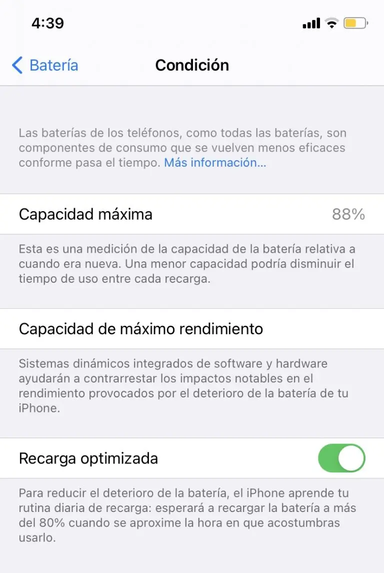 Salud | Capacidad máxima real de la batería | Cuánto dura comparado con cuando era nueva |